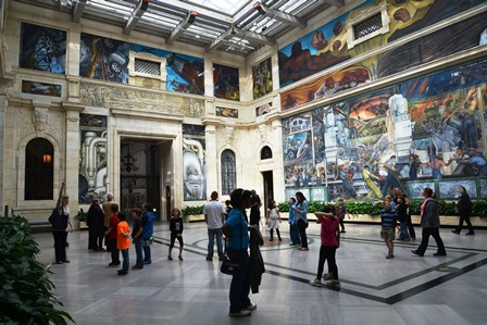 The docent generously walked me through the mural, pointing out great details, which I am sure I would have otherwise missed. Then as we stood admiring the work, she told me that the week before she had a group of Mexican students, girls around 15, who had never heard of Diego Rivera, but that when she mentioned his wife, let out a collective sigh of recognition – I could just imagine the moment, and the look Frieda might have cast Diego.