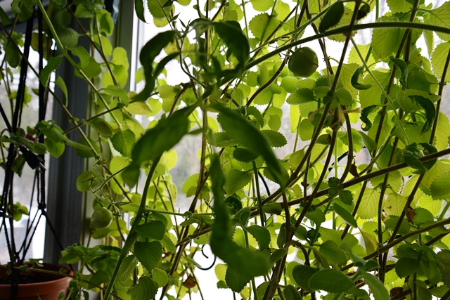 This branch is growing on the ceiling — can you imagine if they all turn into tomatoes!