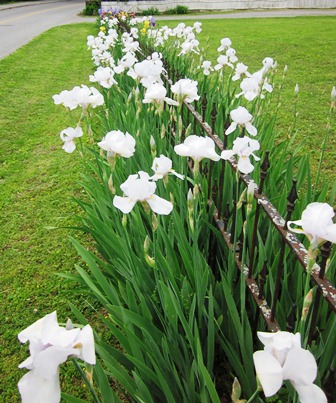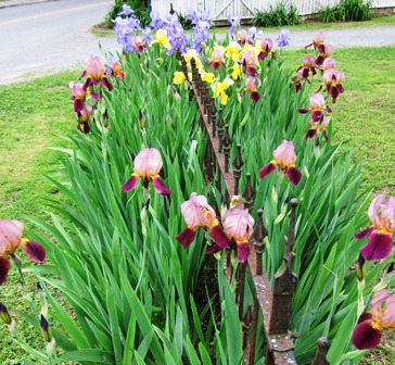 Completing our series on flower bulbs, in the garden, here are the irises, as promised. In Lynchburg, Tennessee, we happened upon these beautiful irises, all growing along an old rod-iron fence. The display of color was sublime. Enjoy!