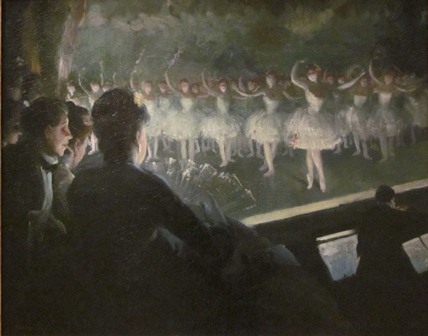 I love the man, on the left side of the canvas, who seems so thoroughly captivated by the stage of ballerinas.