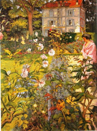It is almost as if the woman, in this painting, were inconsequential, a mere afterthought to the flowers, which dominate the canvas, and draw your eyes in toward what is a maze of not quite defined blooms. There is nothing quite like a walk in a garden, even if only made from tempera.