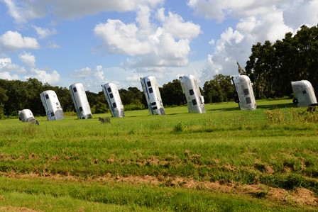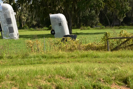 I could not resist stopping for this shot. These eight Airstream trailers were half buried, after Frank Bates saw the Cadillac Ranch (http://thatisallfornow.com/?p=6981 ) on a helicopter trip across country, and decided that imitation is the highest form of flattery. Situated off of the I-4, in Dover, Florida, it certainly brought a smile to my face; as I hope it does you.