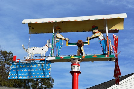 The Welcome Center for North Carolina, on the I95, is a rest area I often pull into; recently, I was pleasantly surprised to find a new addition to the landscape – Vollis Simpson’s whirligig, “Saw Dog”!